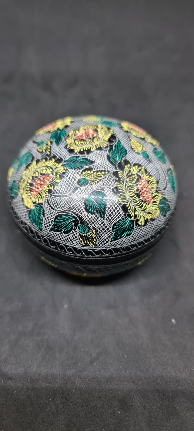 Boîte ronde en papier mâché de sept centimètres de diamètre